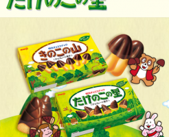 どっちが好きですか・・? 私は『きのこの山』♡ 周りに聞くと 『たけのこの里』派が 圧倒的に多いデス💦 「僕はきのこの山派です たけのこは土に埋まっとけ」 右側に少しだけ見える 積み上げられた箱は 「たけのこの里」‥ こ・・・
