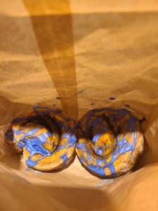 青い上掛けのアイシングは